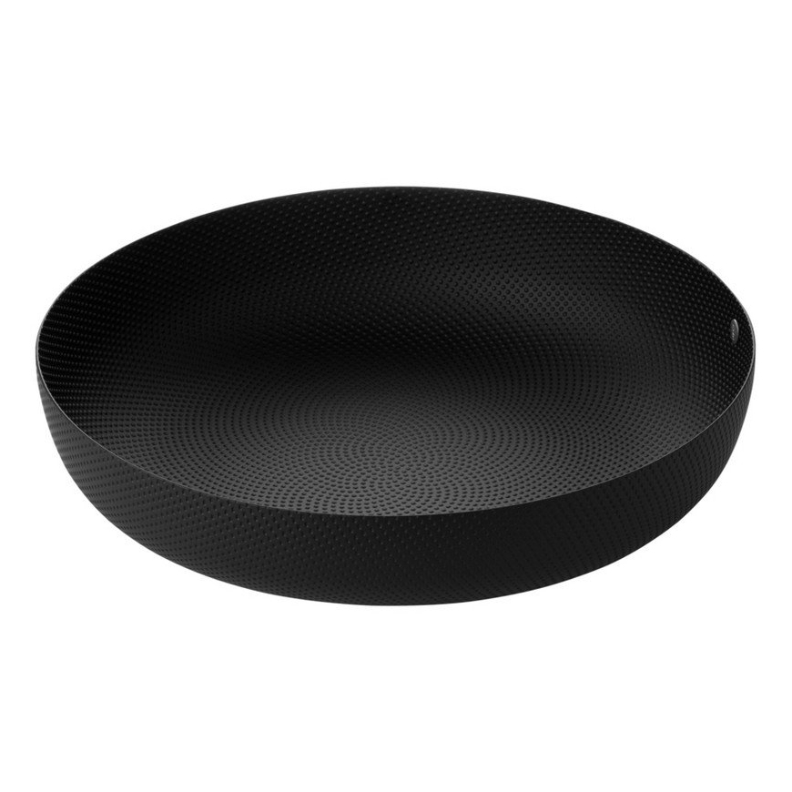 Einfache, schwarze Schale aus sehr dünnem Stahl gefertigt, schwarz-matt lackiert. Das eingearbeitete Relief verleiht der Schale das gewisse Etwas. Von Jasper Morrison für Alessi.