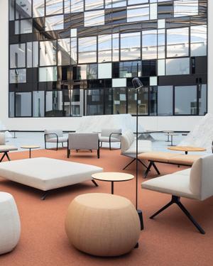 Der Kiik Bench von Arper, gestaltet von Ichiro Iwasaki, verkörpert ein flexibles Modul-System, das Begegnung, Pause und Arbeit in einem Möbel vereint. Die klare, gepolsterte Sitzbank lässt sich mit oder ohne Rückenlehne, Armlehnen und USB-Ladefunktionen individuell konfigurieren – ideal für Warteräume, Lounges, Büros oder öffentliche Bereiche. Mit klaren Linien, einer offenen, leicht wirkenden Struktur und einem breiten Spektrum an Stoffen und Leder passt Kiik sich mühelos unterschiedlichen Umgebungen an und schafft dynamische Raumzonierungen für gemeinsames Miteinander. Durch die vielen Varianten und Konfigurationen ist eine kreative und individuelle Gestaltung auf jeden Raum möglich