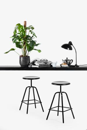 Der Herrenberger Barhocker ist in drei verschiedenen Höhen lieferbar: 65, 73 oder 81 cm. Das schlichte Industriedesign erinnert an die Werkstattmöbel der 30er Jahre.