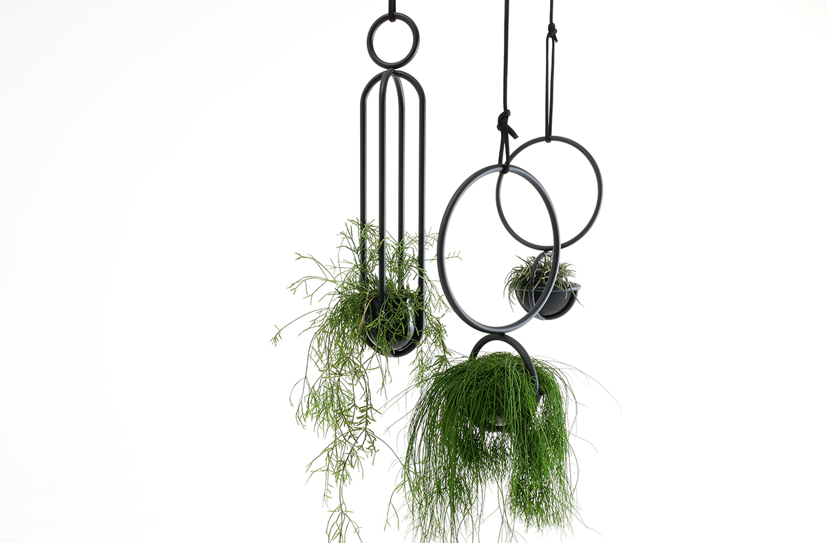 Mit dieser Blumenampel Anna Blume lang werden Pflanzen mal anders in Szene gesetzt. Wie Raumobjekte wirken die Pflanzengefäße von Zascho Petkow.