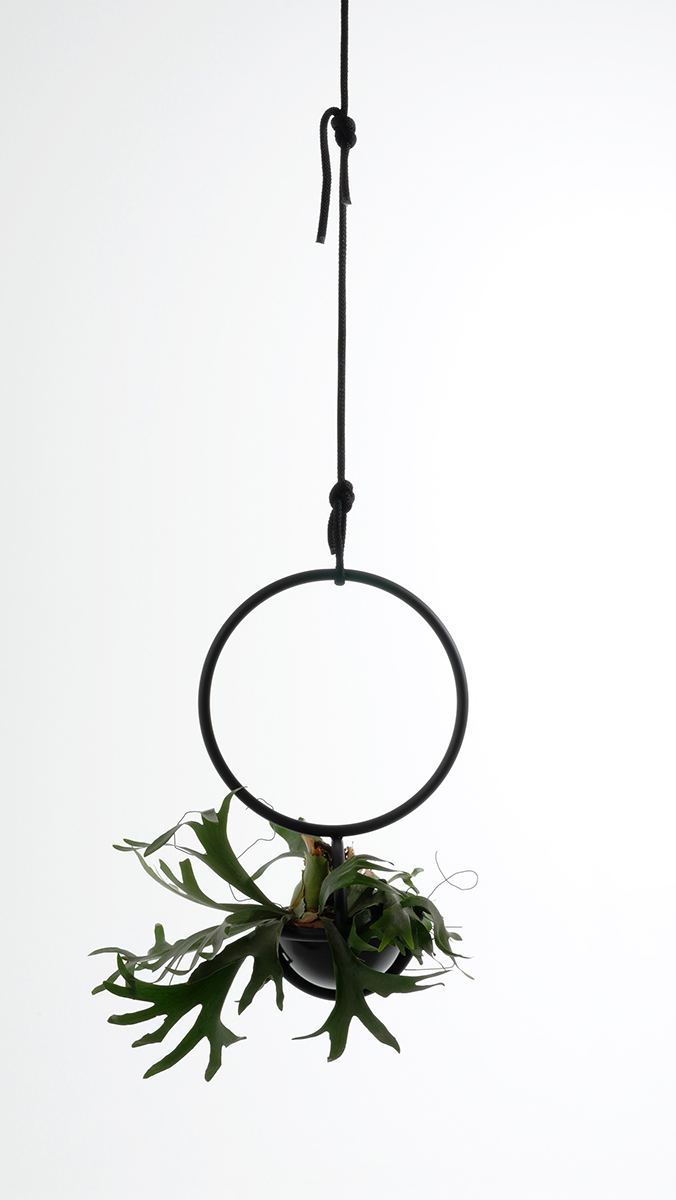 Allein oder zusammen mit den Blumenampeln sind wunderschöne Arrangements von Pflanzen möglich. Wie eine Kunstinstallation wirken die Gefäße. Opulent oder minimalistisch bestückt, bringen sie jede Pflanze zur Geltung.