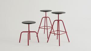Inspiriert von den Industrieentwürfen der 30er Jahre hat Andreas Haußmann den Herrenberger Hocker entworfen. Der präzise gefertigte Hocker ist robust und funktional. Die Stahlrohrkonstruktion auf vier Beinen ist pulverbeschichtet. Durch das schlichte Design lässt sich der Hocker in fast alle Wohn- und Arbeitsbereiche integrieren. Die gedrechselte Sitzschale aus Massivholz bietet durch ihre gewölbte Form den gewünschten Sitzkomfort.