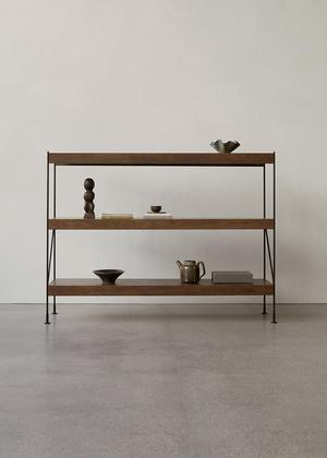 Das Zet Sideboard von Audo Copenhagen verbindet funktionale Klarheit mit architektonischer Eleganz. Das von Kaschkasch entworfene Möbelstück besteht aus leichten Regalböden, die von einem markanten, geradlinigen Stahlrahmen getragen werden. Die offene Struktur sorgt für visuelle Leichtigkeit, während die klaren Linien und natürlichen Materialien dem Sideboard eine zeitlose, moderne Ausstrahlung verleihen – ideal für Wohn- und Arbeitsbereiche.