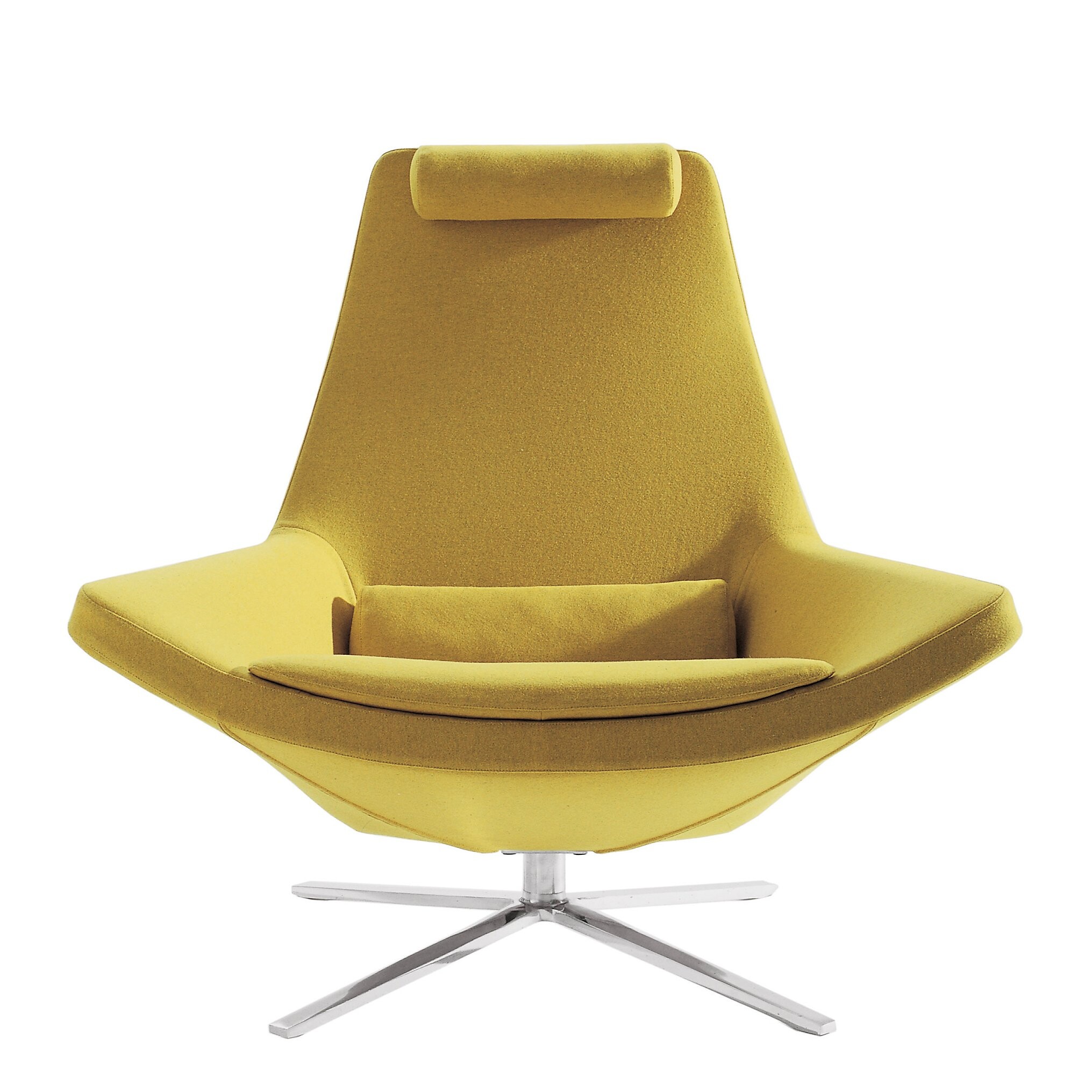 Sein Markenzeichen: Der Metropolitan besticht durch geschmeidige, fließende Linien, die ihm eine leichte und unbeschwerte Ästhetik verleihen. Besonders auffällig ist der nahtlose Übergang von der Sitzfläche zu den Armlehnen. Sein glänzend poliertes Aluminium-Drehgestell setzt einen eleganten Kontrast zur Sitzschale, die wahlweise mit Stoff oder Leder bezogen ist.