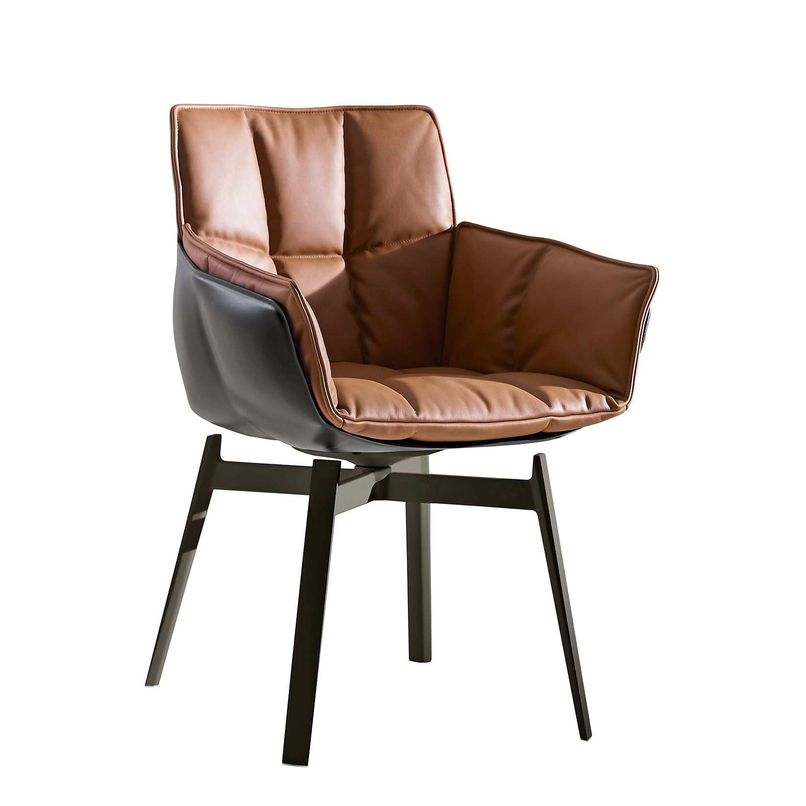 Die unverkennbare Husk-Serie der renommierten Designerin Patricia Urquiola hat Zuwachs bekommen. Auch als drehbarer Esstisch-Stuhl überzeugt die moderne Kombination von Unterbau und gepolsterter Sitzfläche.