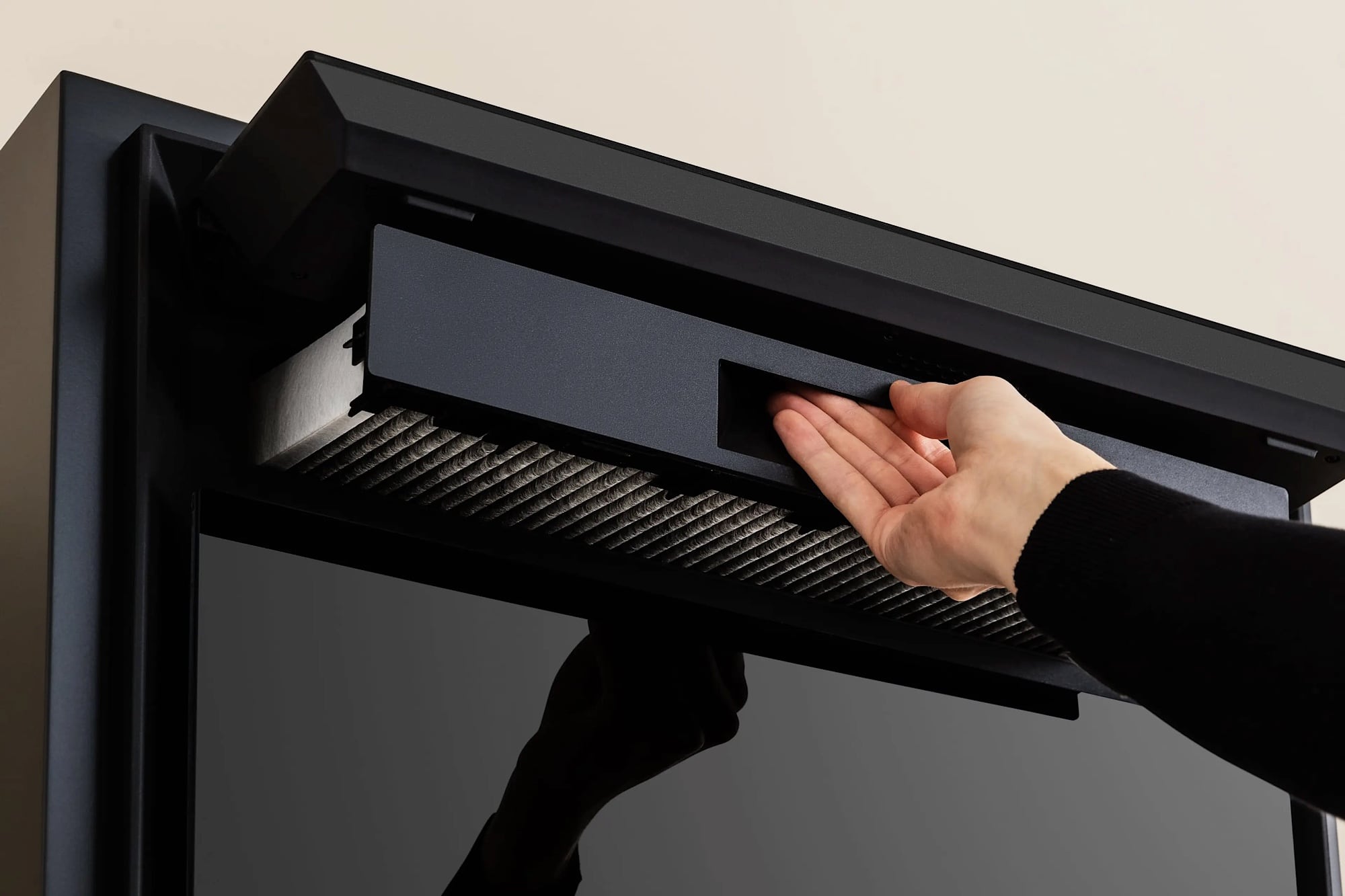 Damit der BORA X BO optimal funktioniert, muss der Filter regelmäßig ausgetauscht werden. Dies ist ganz einfach: Klappen Sie einfach das Display an der Vorderseite des Geräts hoch, ohne dass Sie Schrauben oder Bauteile entfernen müssen.Ein Balken unter dem „Filterwechsel“-Symbol zeigt die verbleibende Zeit bis zum nächsten Filteraustausch an und erinnert Sie rechtzeitig daran, dass ein Wechsel erforderlich ist.
