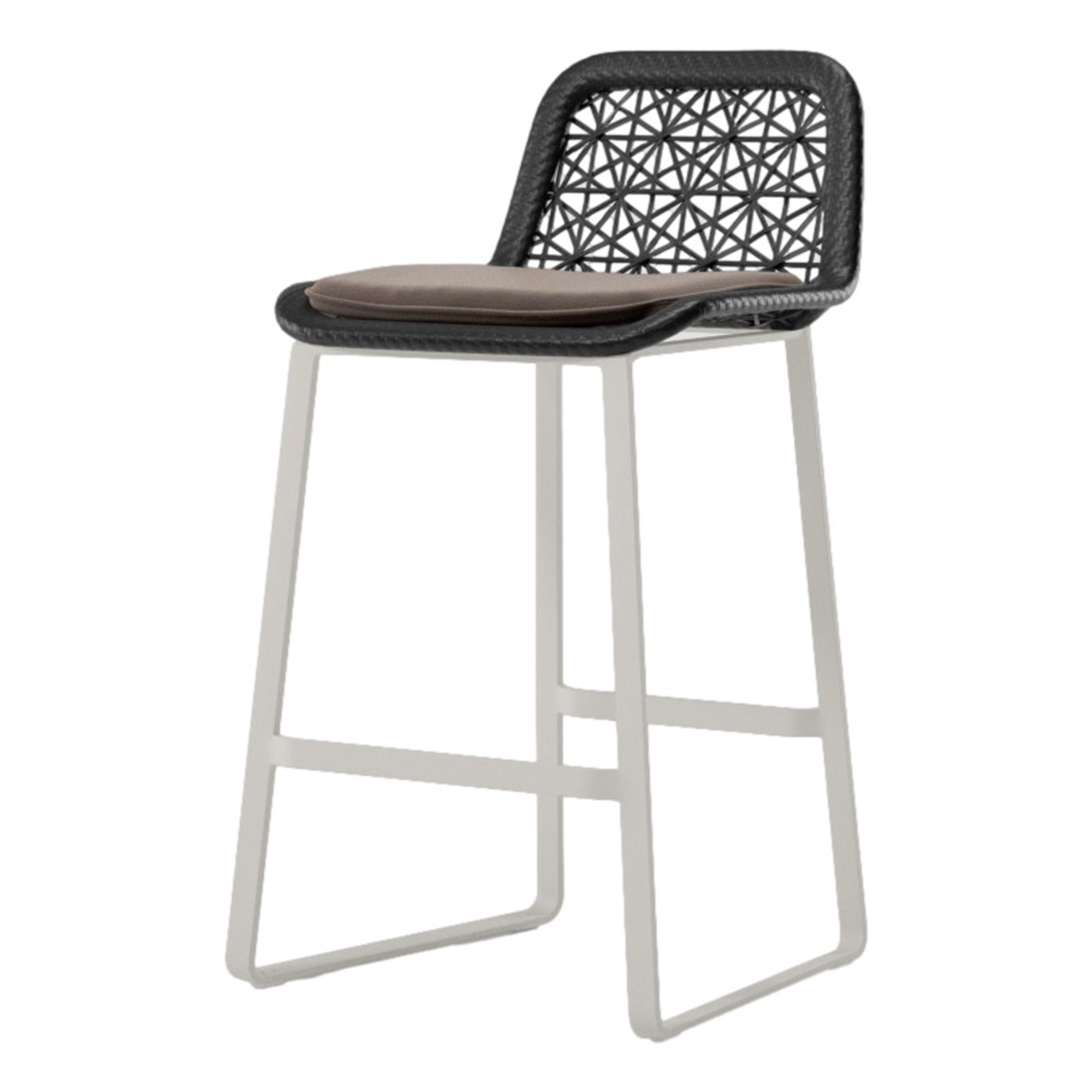 Der Rahmen des Barhockers besteht aus pulverbeschichtetem Aluminium, das für Langlebigkeit und Wetterbeständigkeit sorgt. Das Kufen-Gestell ist in der Standardausführung in der Farbe des Geflechts gehalten, kann jedoch auf Anfrage in vielen weiteren Farben bestellt werden. Optional sind Sitzkissen erhältlich, die in verschiedenen Farb- und Stoffvarianten angeboten werden.