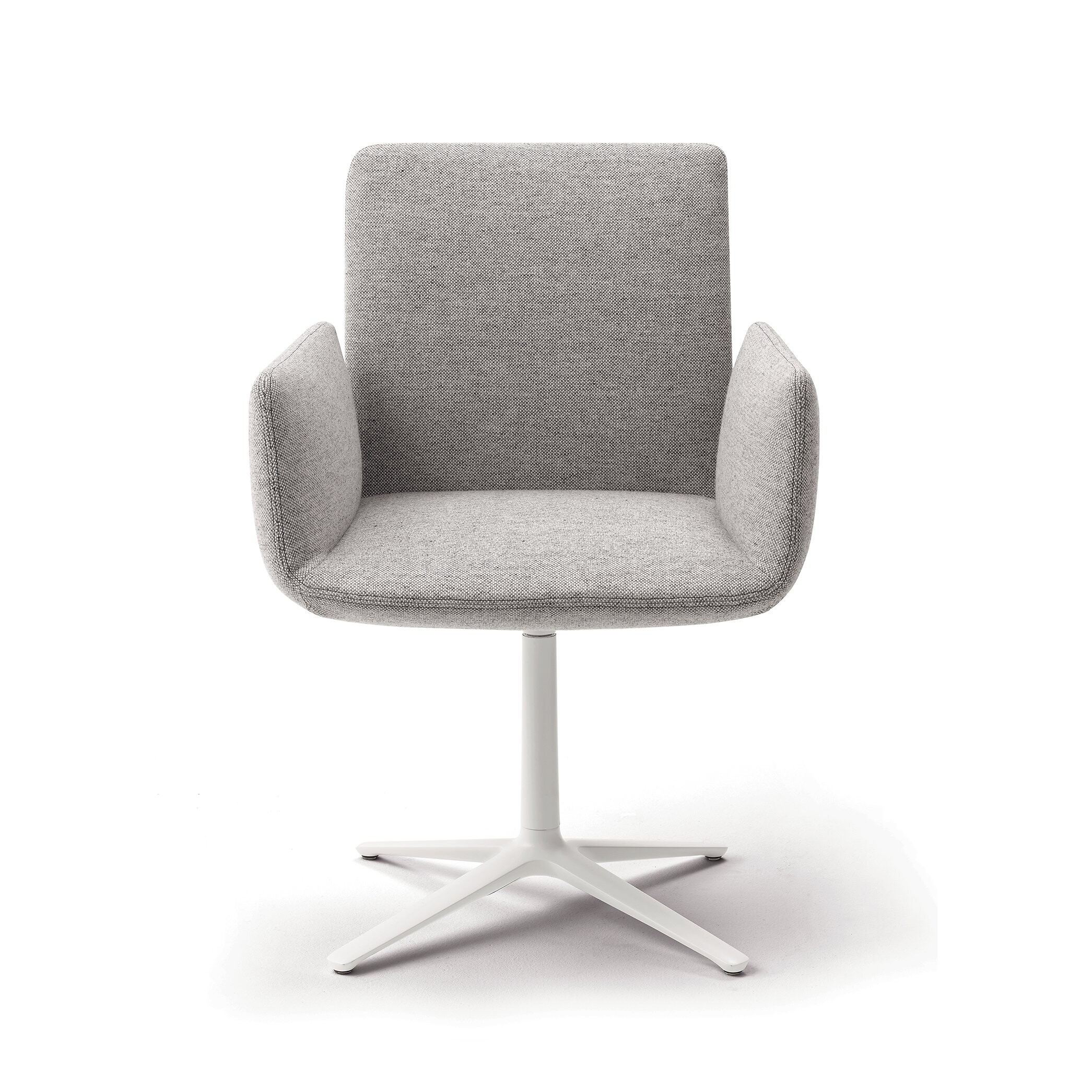 Der Jalis Stuhl von COR, gestaltet von Jehs + Laub, besteht aus einem aufwendig gepolsterten Sitzkörper, der an ein weich gefaltetes Kissen erinnert – kombiniert mit einem klaren Draht- oder Vierfußgestell aus Aluminium. Trotz seiner Form wirkt Jalis komfortabel und einladend und bietet durch seine leicht federnde Rückenlehne eine angenehme Sitzdynamik. Er ist in Stoff oder Leder erhältlich, mit kontrastfarbenen Steppnähten optional, und wahlweise mit schwarzem oder verchromtem Untergestell lieferbar. Der drehbare Jalis (mit 4‑ oder 5‑Stern-Gestell, auch mit Rollen) bietet 360° Bewegungsfreiheit. Jalis bringt warme Eleganz ins Esszimmer, Büro oder Lounge und verbindet klare Linien mit hohem Sitzkomfort.