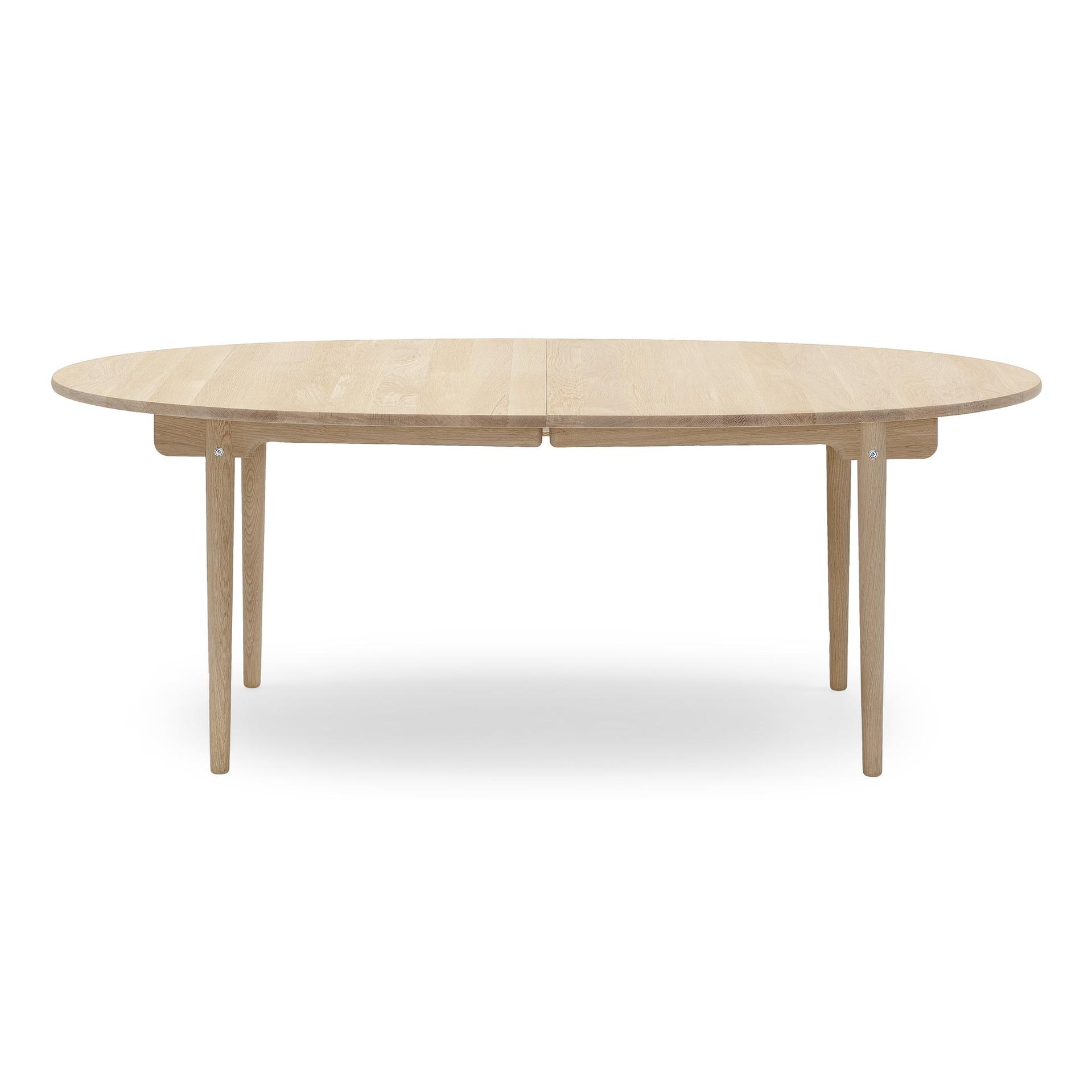 Mahagoni ist ein tropisches Hartholz, welches die Carl Hansen Kollektion um ein weiteres Holz erweitert. Das Holz ist für seine tiefen, einheitlichen Farben und Maserungseigenschaften bekannt. Die Tische sind außerdem aus dem Massivholz Eiche und Walnuss erhältlich. Der Auszug bietet die Möglichkeit der Einlage für bis zu zwei zusätzliche Platten einschließlich eines Holzstützbeins in schwarz. Somit kann eine Tischlänge von 260cm beim Modell CH337 erreicht werden.