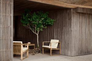 Der Sessel BK11 lädt an lauen Sommerabenden zum gemütlichen Verweilen im Garten oder Balkon ein. Die Neigung der Rückenlehne macht Sessel und Sofa besonders bequem.