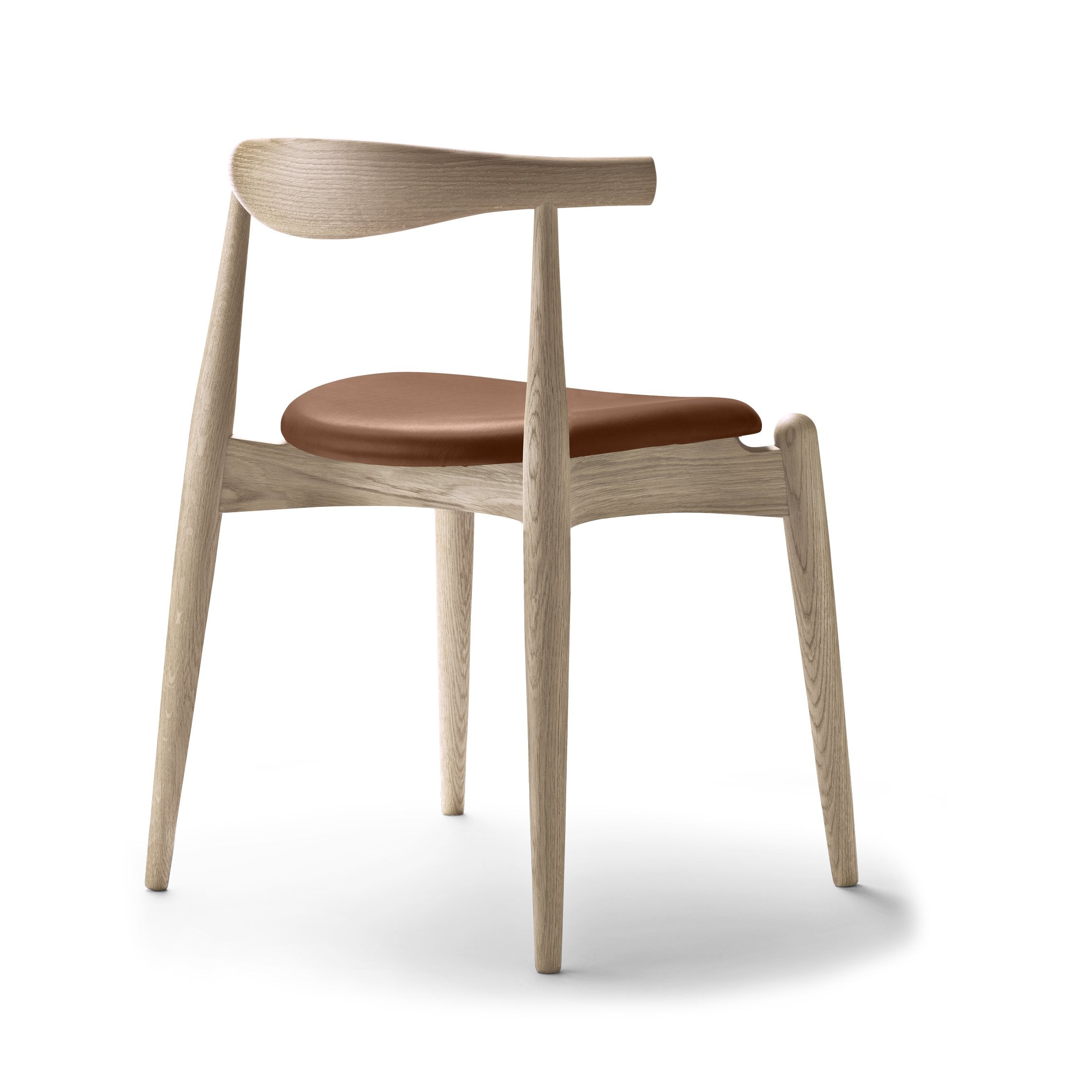 Besonders markant ist die dampfgebogene Rückenlehne aus einem einzigen Stück Massivholz, die dem Stuhl nicht nur seinen Namen verleiht, sondern auch vielseitigen Sitzkomfort bietet. Sie stützt Ellbogen und unteren Rücken und erlaubt gleichzeitig verschiedene entspannte Sitzhaltungen.