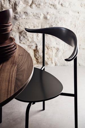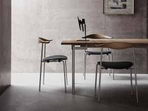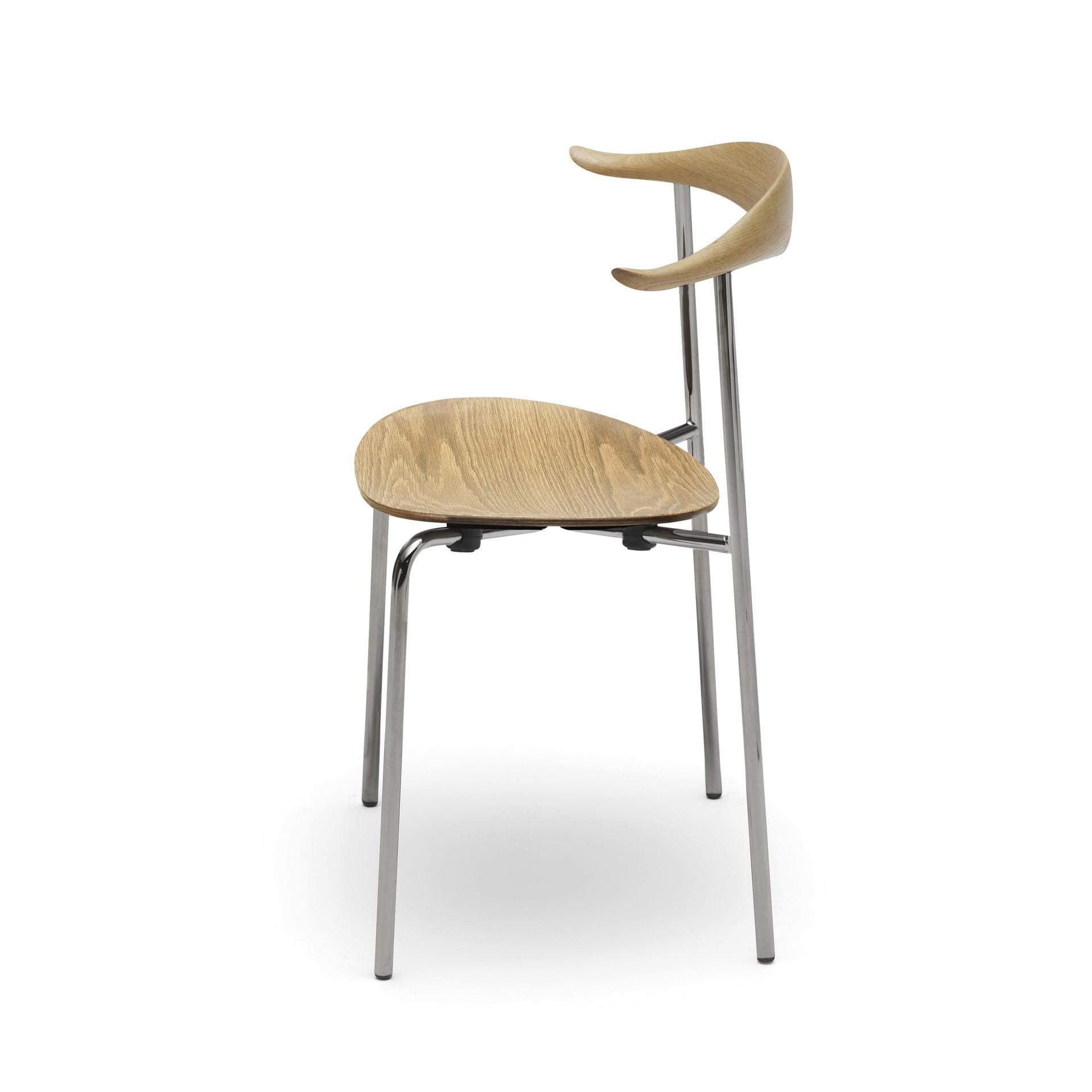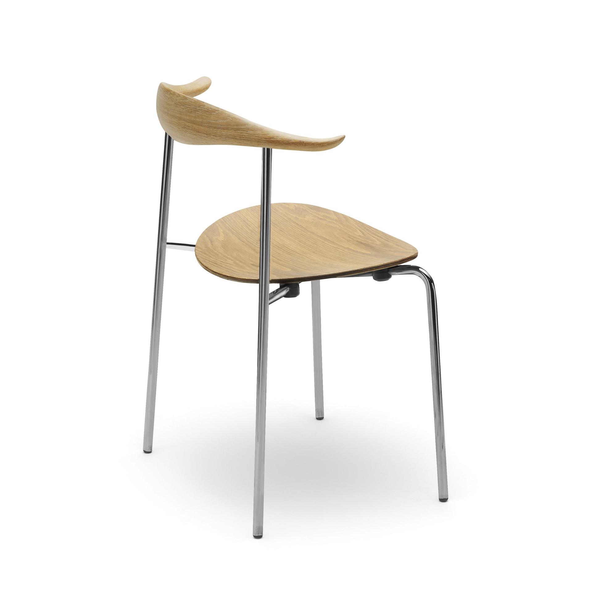 Die Ausdruckstärke der Produkteigenschaften des CH88 Stuhl wird durch seine Formgebung unterstützt. Eine oval beziehungsweiche organisch geformte Sitzschale und Rückenlehne unterstreichen Holz als natürliches und nachhaltiges Material. Wobei die geraden und klaren Stuhlbeine die Stärke des Stahls symbolisieren.