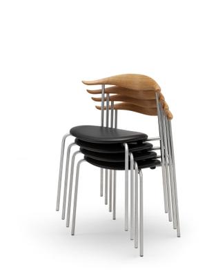 Einen zusätzlichen Vorteil erhält der Stuhl aus dem Jahr 1955 durch seine Stapelbarkeit und die Option, den Sitz auch mit einem Sitzpolster auszustatten.
