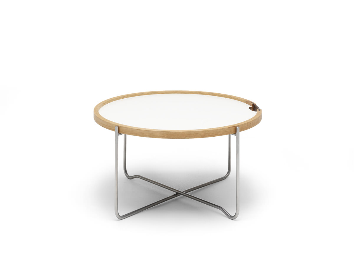 Der Beistelltisch CH417 von Carl Hansen & Søn ist ein elegantes und flexibel einsetzbares Designobjekt. Hans J. Wegner hat den Beistelltisch mit zwei separaten Teilen entworfen, um die runde Tischplatte auch einzeln als Tablett nutzen zu können.