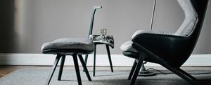 Der kleine Tisch Cicognino ist ein praktischer Begleiter. Eines der Tischbeine ist verlängert und endet mit schnabelförmige Griff. So folgt der Tisch unkompliziert seinem Nutzer.