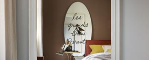 Der siebbedruckte Spiegel Les Grands Trans-Parents von Cassina ist die Serienproduktion des Originalkunstwerkes von Man Ray aus dem Jahre 1938.