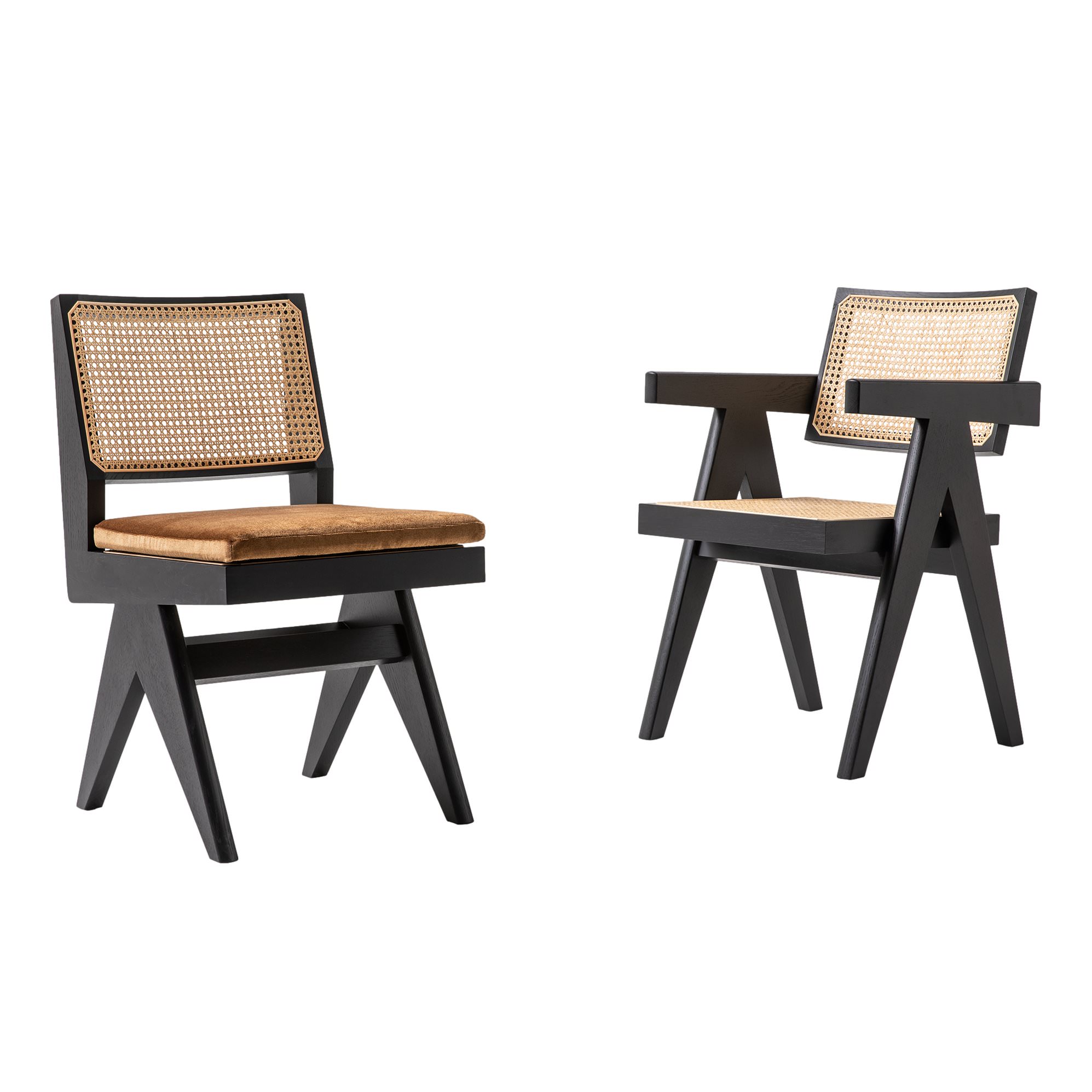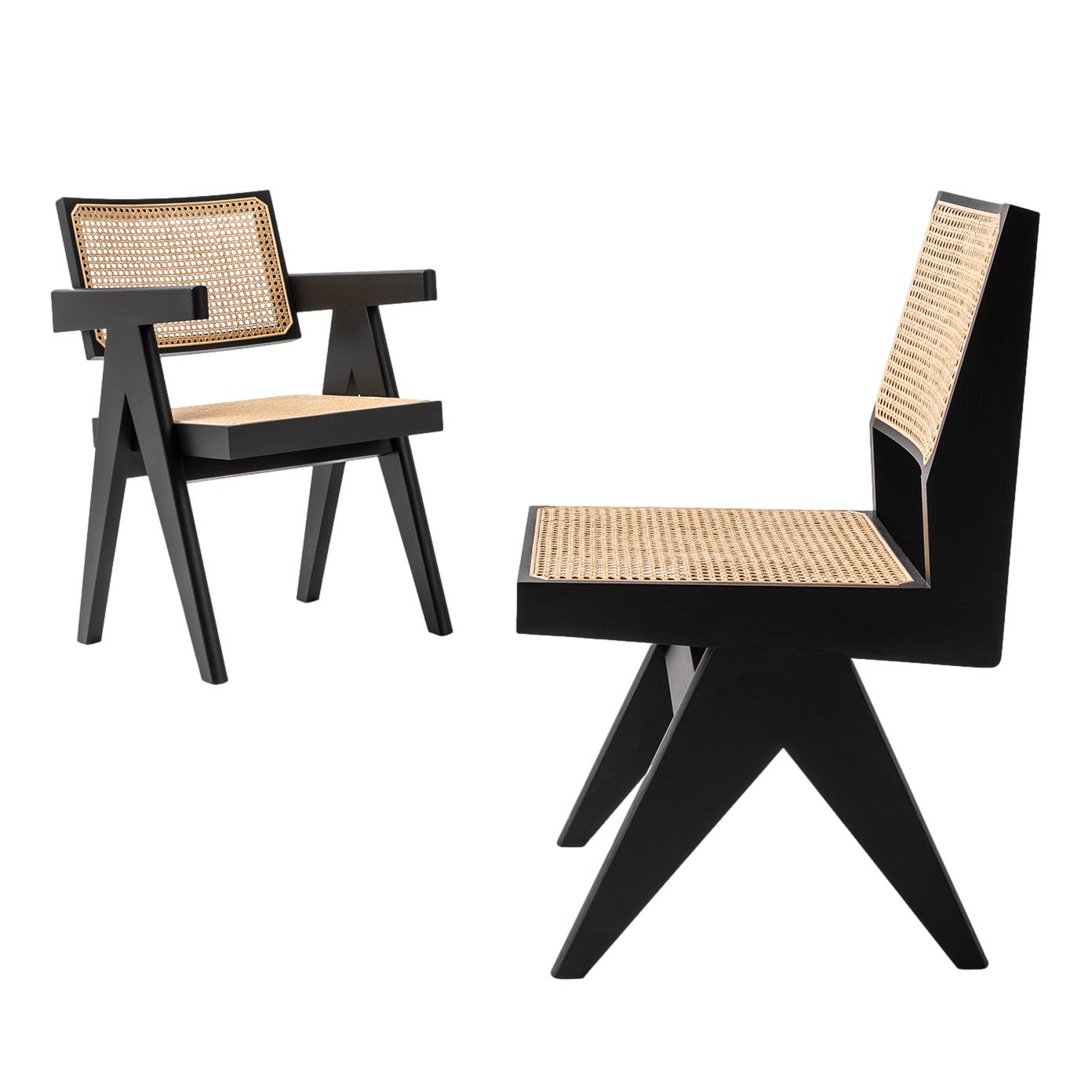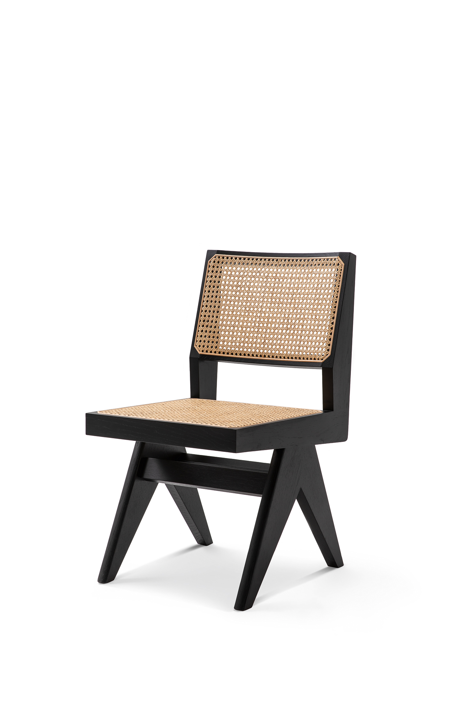 Den Stuhl hat Jeanneret für das Kapitol-Komplex in Chandigarh/Indien entworfen, dessen Bau er als Partner von Le Corbusier 15 Jahre lang begleitete.