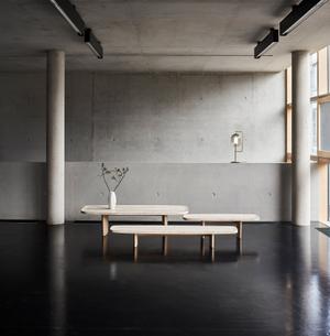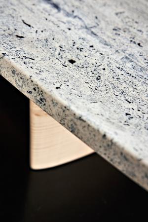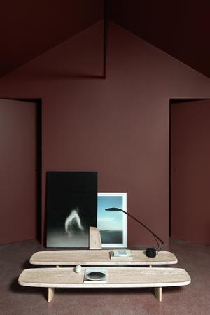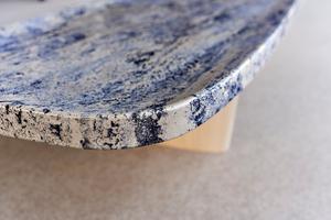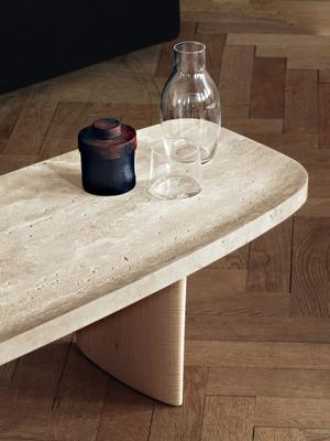 Der Matéria Beistelltisch vereint edle Materialien mit einer durchdachten, handwerklichen Verarbeitung. Das Gestell besteht aus massivem Ahorn, naturbelassen und klar lackiert, um die natürliche Maserung des Holzes schön zur Geltung zu bringen. Die Tischplatte aus Travertin ist ein besonderes Highlight – entweder in ihrer natürlichen Form oder mit indigo gefärbten Vertiefungen, die dem Tisch einen modernen Touch verleihen.