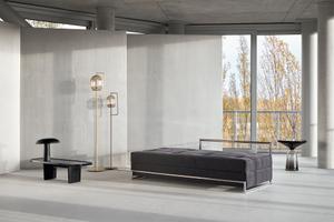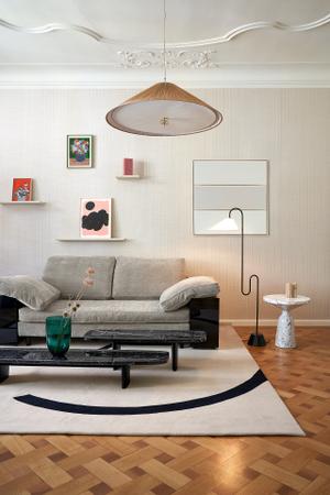 Der Unterbau der Platte aus farbig lackiertem Metall in Hellelfenbein (RAL 1015) sorgt für einen harmonischen Kontrast zum Naturstein. Schwarze Filzgleiter an den Füßen schützen den Boden und runden das Design ab. Der Matéria Beistelltisch ist Teil einer Serie und wird durch den Matéria Coffee Table und den Matéria Side Table ergänzt, die in zwei weiteren Größen erhältlich sind. Diese Möbelstücke lassen sich perfekt miteinander kombinieren und passen in jede stilvolle Einrichtung.