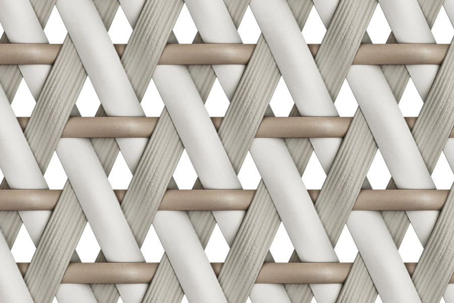 Die CALADIO-Kollektion zelebriert echtes Handwerk mit kunstvoll komponierten Geflechtdetails: Drei verschiedene Dedon-Fasern werden zu einer nahtlosen Sitzschale verwoben, die Sitzfläche, Arm- und Rückenlehne umschließt und eine einladend komfortable Form ergibt.