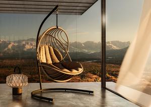Der Hängesessel Kida bietet unvergleichlichen Komfort. Die wiegenartige Form und das luftige Design lassen einen schweben. Kida ist frei hängend oder mit Standfuß bestellbar.