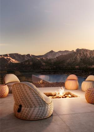 Die Dala Serie von Stephan Burks für Dedon ist so farbenfroh wie die Märkte Marrakeschs. Zu der vielseitigen Kollektion gehören neben dem Lounge Chair und Loveseat auch Hocker, Couch- und Bestelltische.