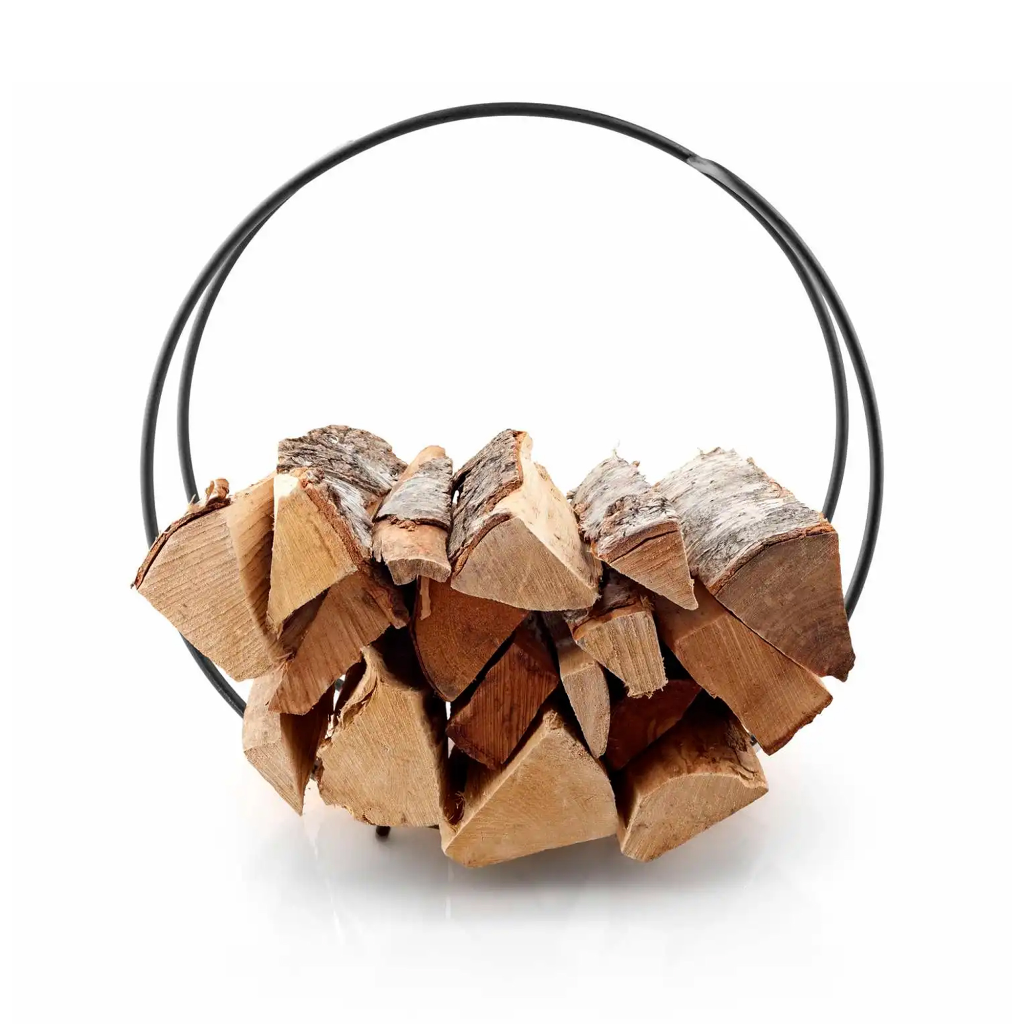 Der Brennholzhalter FireGlobe von Eva Solo ist aus pulverbeschichtetem Stahl gefertigt. Er ist tragbar und praktisch, hat ein schlichtes, stilvolles Design und ist gut für die Aufbewahrung von Holz drinnen und draußen geeignet.