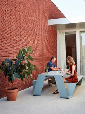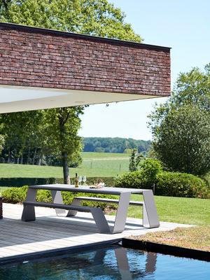 Wie der Name Hopper Picnic schon erahnen lässt, hat sich Designer Dirk Wynants beim Entwurf des Hopper von den bekannten Picknicktischen inspirieren lassen. Was der Hopper diesen voraus hat, ist viel Komfort und schlichte Eleganz.