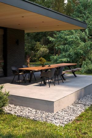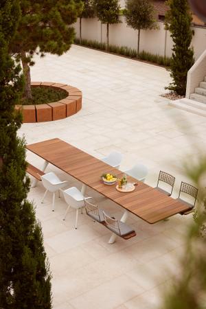 Das Besondere daran? Die clevere Modularität. Mit nur vier Grundelementen – zwei Enden, einer Mittelplatte und Beinen – entsteht im Handumdrehen ein Tischensemble nach Maß. Wer mehr Platz braucht, fügt einfach zusätzliche Mittelplatten hinzu. Schon wächst die Tafel mit – ganz flexibel, ganz einfach.