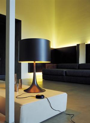 Moderne Herstellungstechnologie gepaart mit Eleganz und Virtuosität resultiert in einem schlichten Entwurf. Die Spun Light besteht aus höchster Aluminium Qualität verarbeitet in einem geradlinigen Leuchtenschrim und einem geschwungenen Leuchtenfuß.
