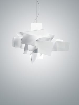 Überkreuzungen von Platten bilden ein Volumen mit verführerischer und energischer Persönlichkeit. Enrico Franzolini und Vicente Garcia Jimenez haben mit der Leuchte Big Bang eine spannende und scheinbar zufällige Leuchtenform entworfen.