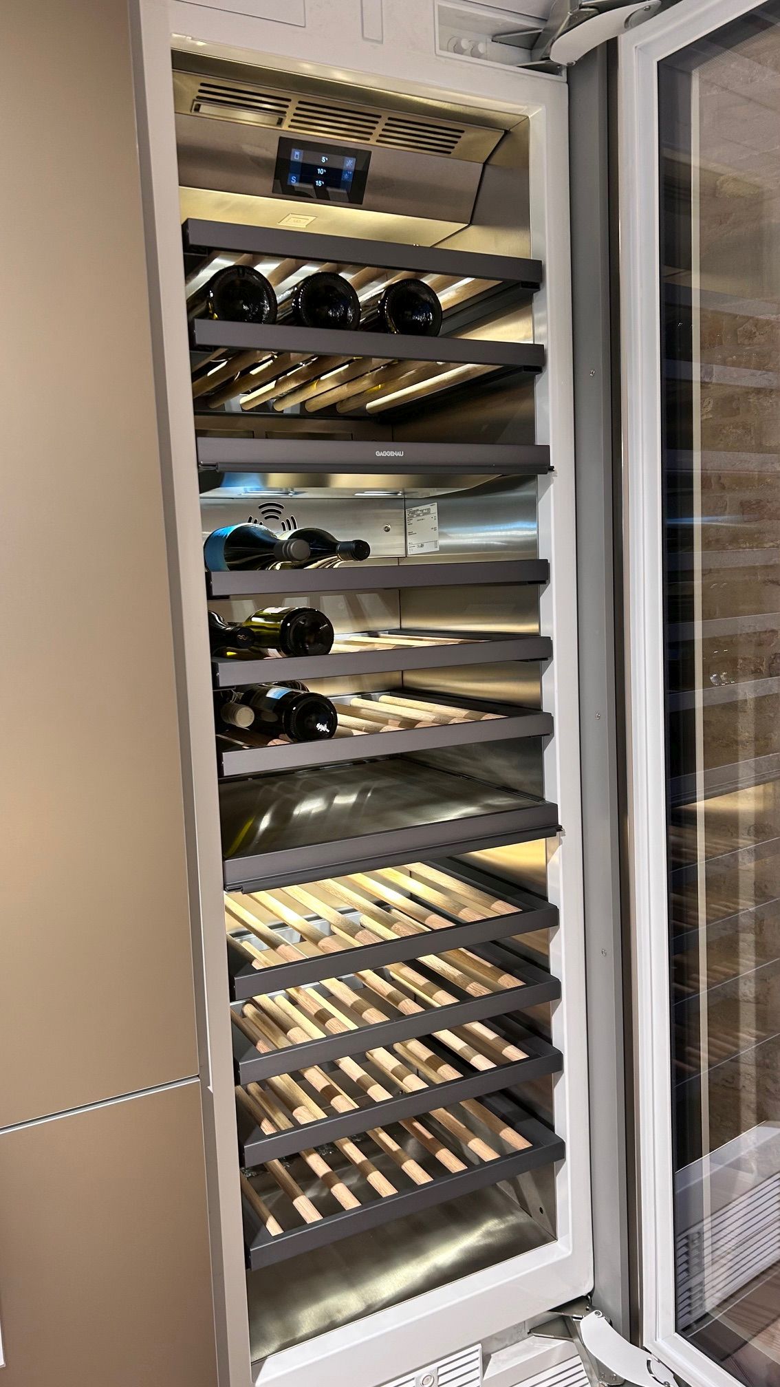 vollintegrierbar mit Glastür, Bedienung über TFT-Touch-Display, Nutzinhalt 370 Liter (ca. 99 Flaschen, 0,75 L - Standardflaschenformen)