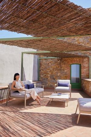 Kombinieren Sie den Couchtisch Timeless mit den Sofa-Modulen der gleichen Kollektion, um einen diskreten und gemütlichen Wohnbereich auf der Terrasse Ihres Hauses oder in den Räumen eines beliebigen Objekts zu schaffen.
