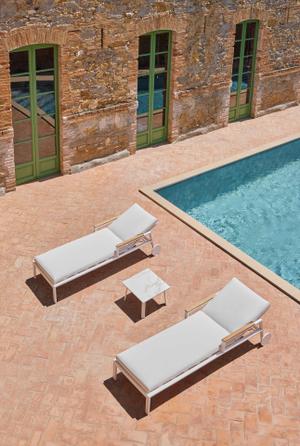 Diese Liege für den Außenbereich wurde so konzipiert, dass Sie sie mit den Farben und Ausführungen, die am besten zu Ihren Bedürfnissen passen, voll und ganz individuell gestalten können. Wenn Sie möchten, können Sie sie mit den anderen Elementen der Kollektion kombinieren, um Ihren eigenen Timeless-Außenbereich zu schaffen, am Pool, zu Hause oder in größeren Projekten.