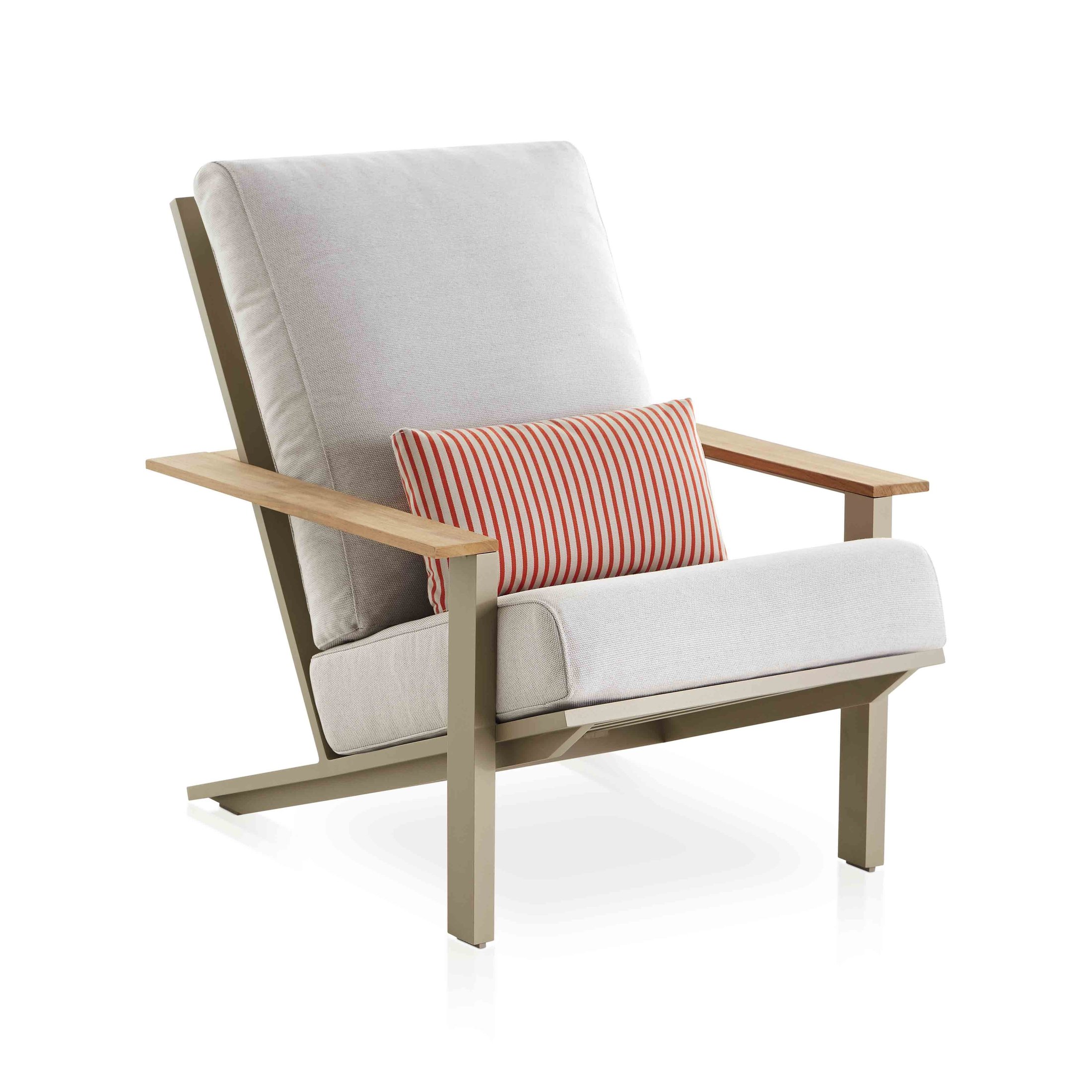 Es ist ein Designer-Clubsessel, den Sie drinnen oder draußen genießen können. Die hochwertigen Bezugsstoffe von Dedar Milano, Sunbrella und Kvadrat sind in verschiedenen Ausführungen erhältlich, deren Textur an Polsterungen für Innenräume erinnert.