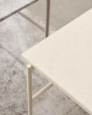 Marmor trifft Industriedesign. Der Rebar Beistelltisch überzeugt durch seine ausgeglichene Ästhetik.
