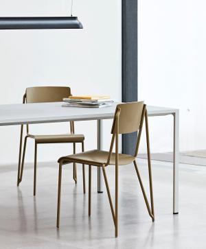 Der Petit Standard Stuhl von HAY, entworfen von Daniel Rybakken, kombiniert minimalistisches Design mit hoher Funktionalität. Das leichte Gestell aus Aluminium und Stahl verleiht ihm Stabilität, während Sitzfläche und Rückenlehne aus geformtem Eichenfurnier für warmen Komfort sorgen. Dank seiner Stapelbarkeit eignet sich der Stuhl sowohl für private Essbereiche als auch für öffentliche Räume und überzeugt durch seine klare, zeitlose Ästhetik.