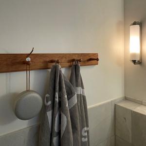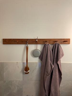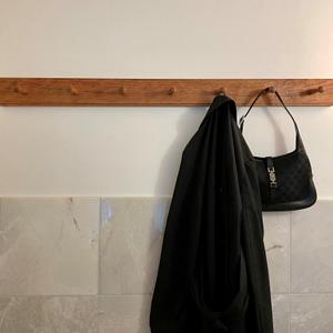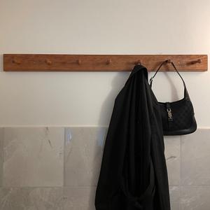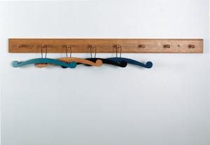 Schlichte Wandgarderobe aus geöltem Kirschbaumholz mit sieben formschönen Haken.