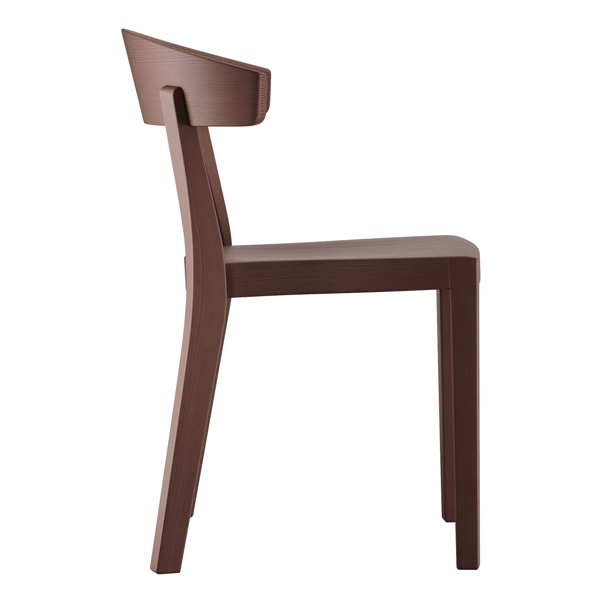 Der Rücken des Klio des fließend in die Armlehnen über und wird wahlweise aus Buche oder Eiche gebogen.