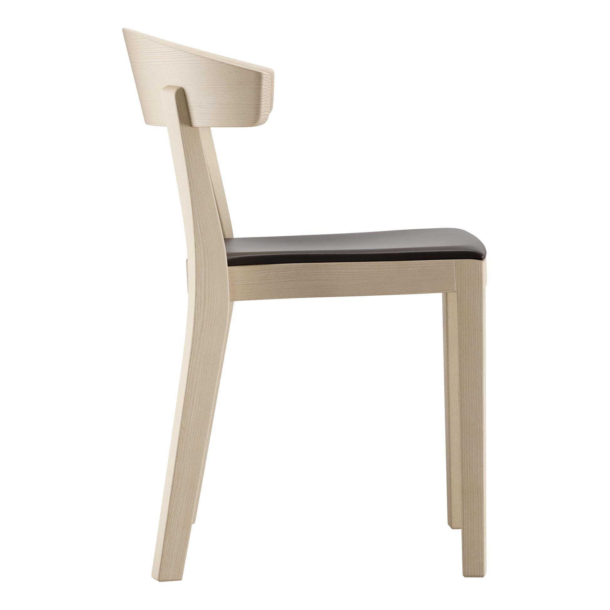 Der Rücken des Klio des fließend in die Armlehnen über und wird wahlweise aus Buche oder Eiche gebogen.