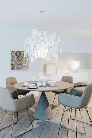 Highlight ist die neue Serie Tami von Studio Schneid: eine fein gearbeitete Tisch-Bank-Kombination, die minimalistisches Design mit handwerklicher Wärme verbindet. Ergänzt wird das Ensemble durch die skulpturalen Leuchten Kaskad, ebenfalls von Studio Schneid – harmonische Lichtobjekte, die den Raum mit sanfter Präsenz füllen.