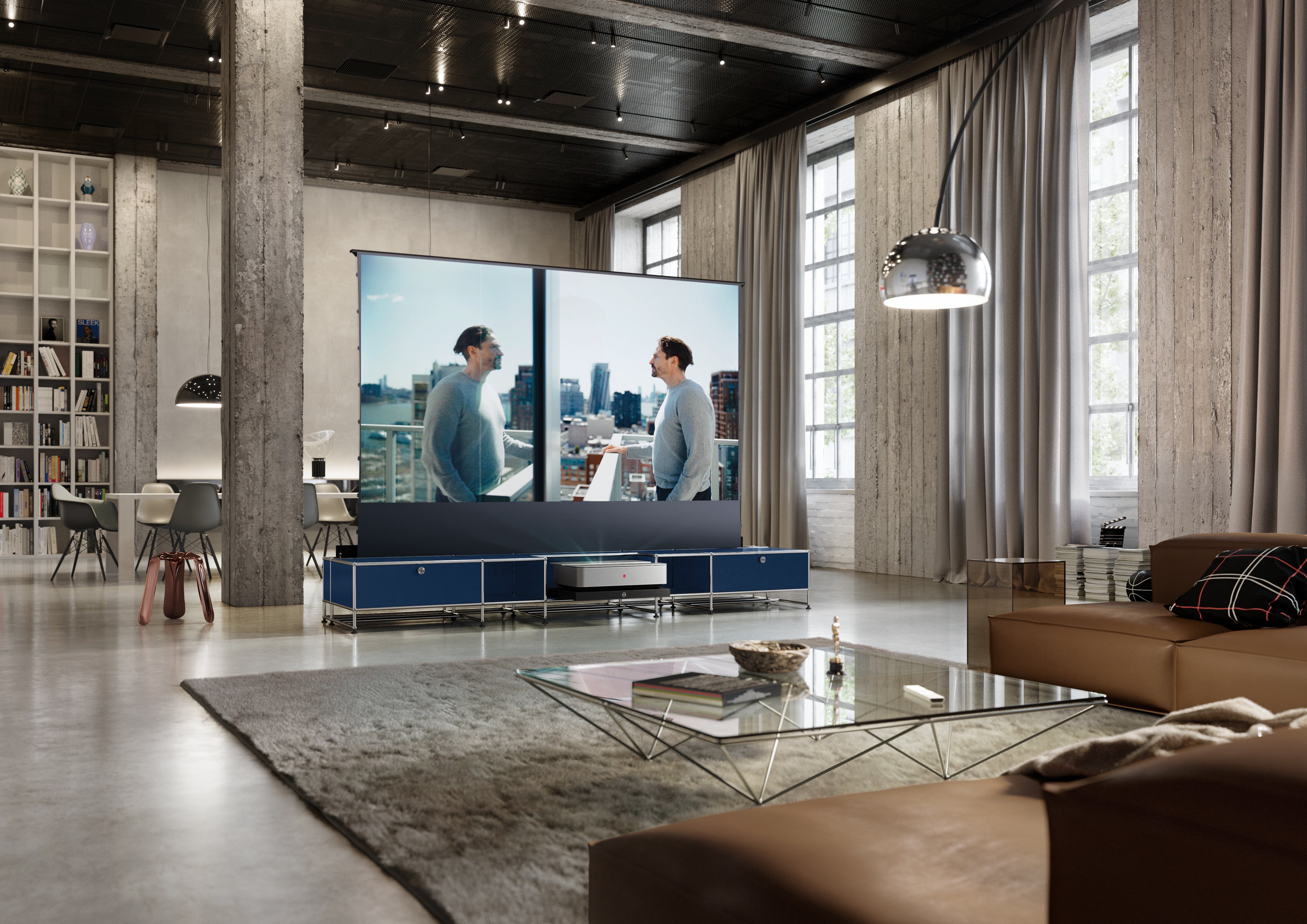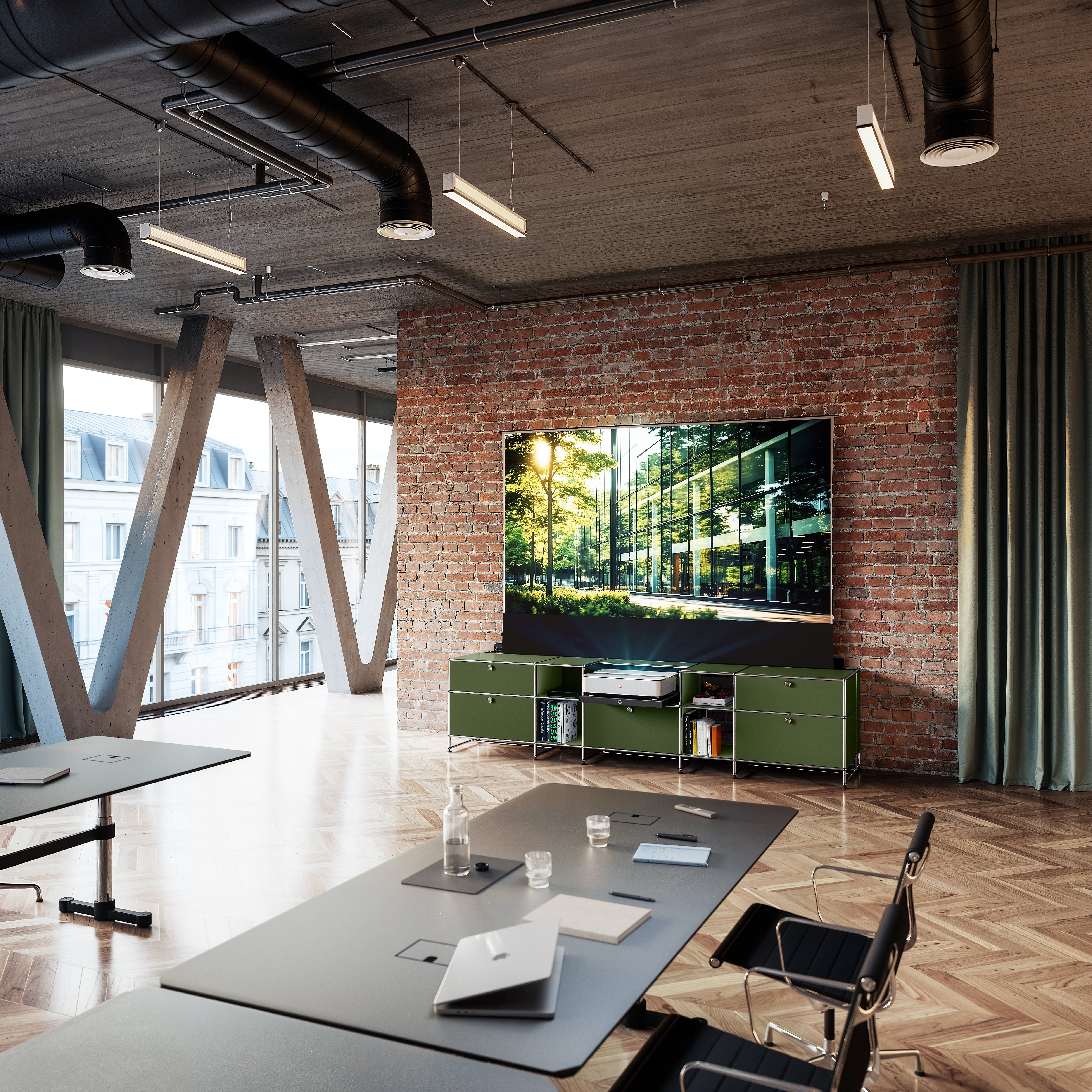 Die eingesetzte RGB-Lasertechnologie sorgt für differenzierte Kontraste und eine angenehme Bildwiedergabe – auch bei längerer Nutzung. So verbindet die USM Leica Cine Collection II modulare Möbelsysteme mit integrierter Medientechnik zu einer Lösung, die funktionale Anforderungen und gestalterische Klarheit miteinander in Einklang bringt.