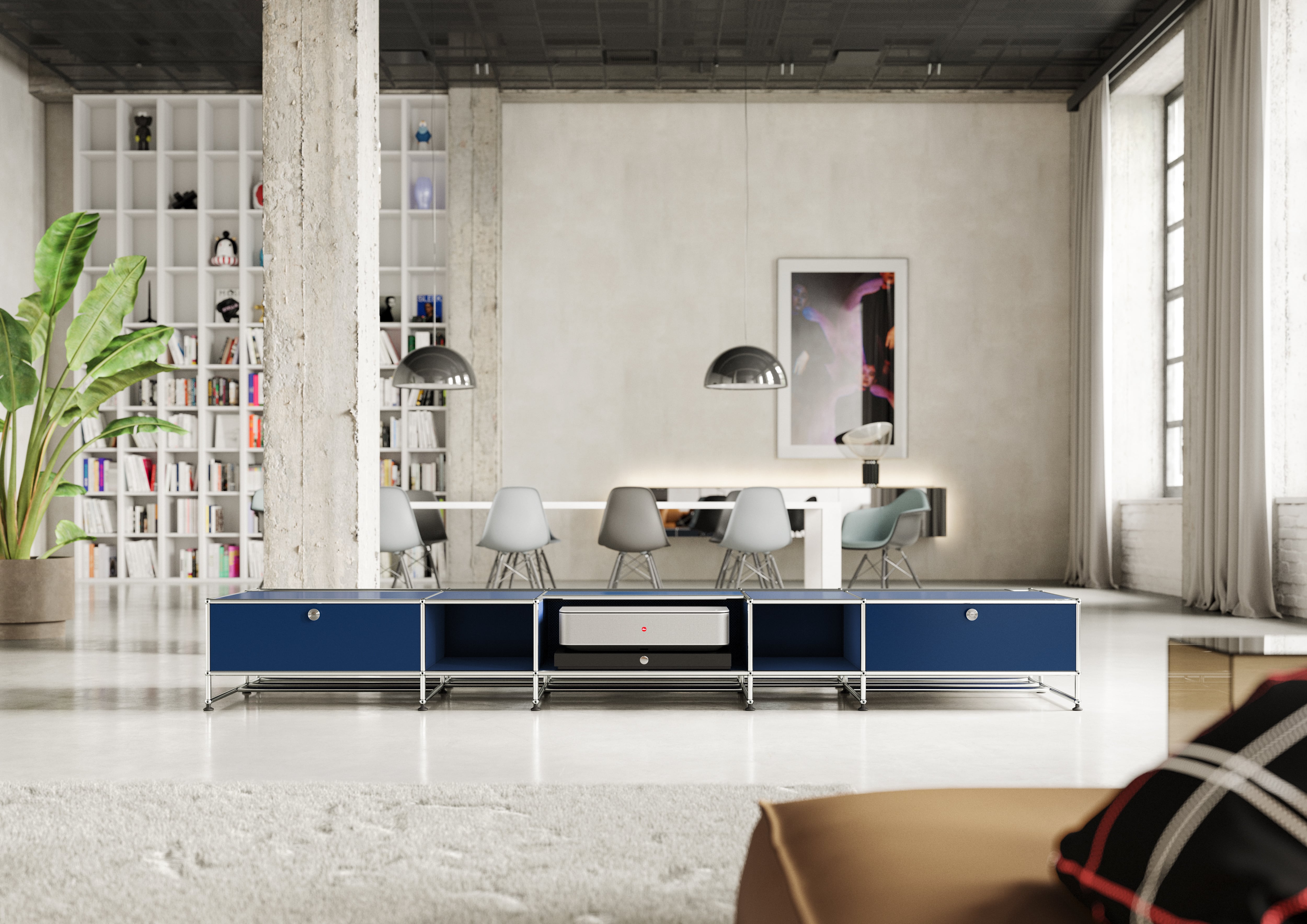 Die Multimediamöbel sind optional auch ohne Leinwand und zugehöriges Gehäuse erhältlich. Darüber hinaus eröffnet das modulare System von USM vielfältige Möglichkeiten für individuelle Anpassungen und eigene Konfigurationen.