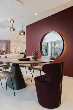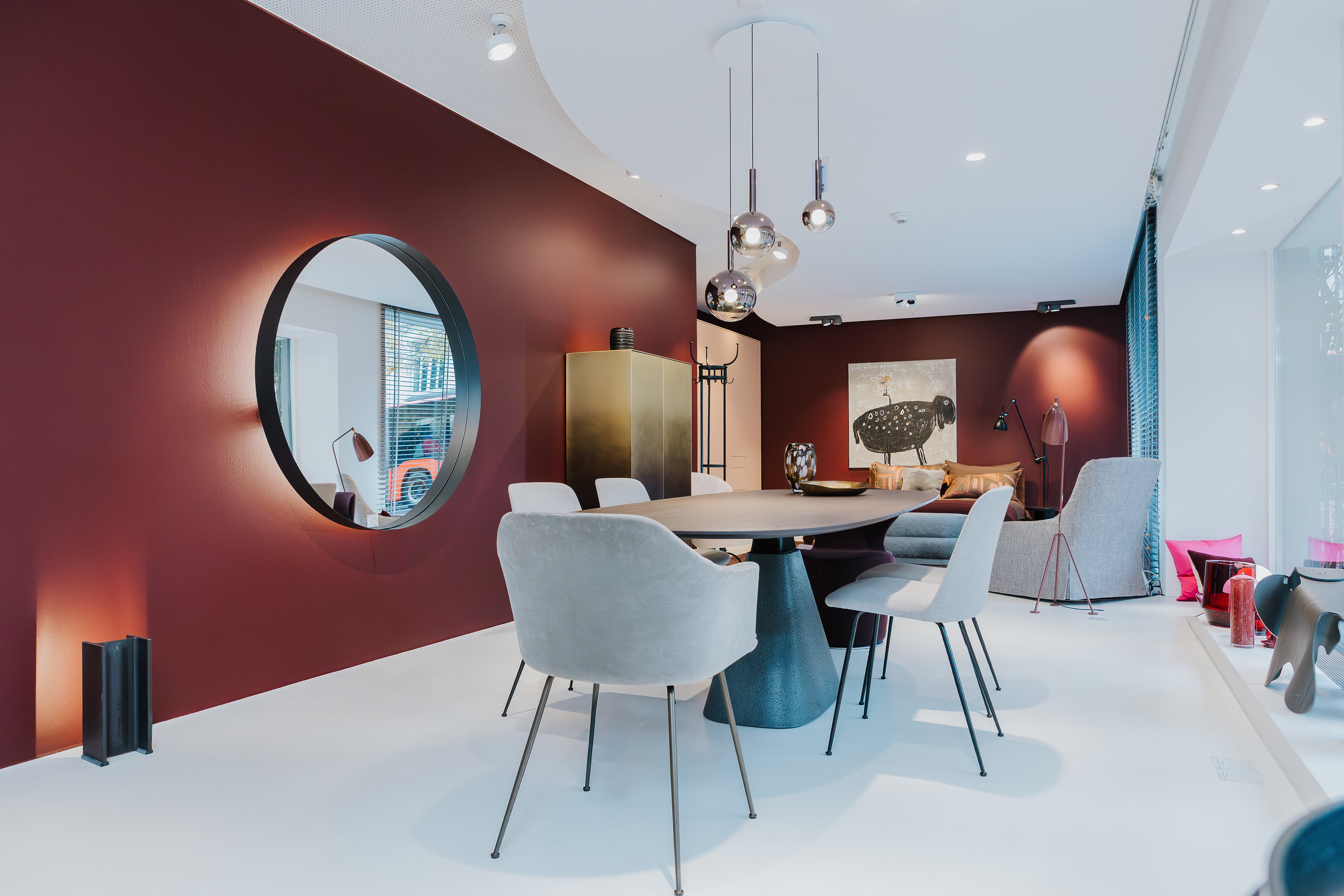 Willkommen in einer Welt, in der Design auf Atmosphäre trifft. Unsere neu gestaltete Ausstellungsfläche vereint ikonische Möbelstücke mit einer warmen, sinnlichen Farbwelt aus Cherry, Cremeweiß und dunklen Hölzern – inspiriert von der Schwarzwälder Kirschtorte. Sattes Rot, cremige Nuancen und edle Holzoberflächen verschmelzen zu einer Bühne voller Kontraste, Tiefe und Harmonie.