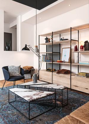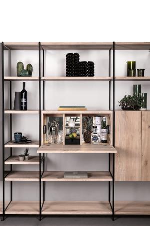 Das modulare Regalsystem BC 06 RooM 68 vereint eine filigrane Konstruktion mit den starken Massivholz-Oberflächen aus der Janua Kollektion. Das eloxierte Aluminium sorgt für ein hohes Maß an Eleganz und umrahmt das Holz gekonnt und sinnlich.
