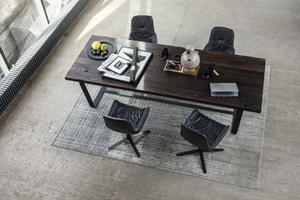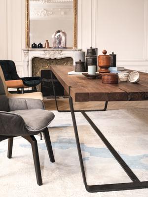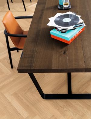 Der BB 11 Clamp Tisch verbindet Flexibilität und Handwerkskunst zu einem innovativen und einmaligem Konzept: Die Tischplatte besteht aus einzelnen Lamellen und ist nicht geleimt.