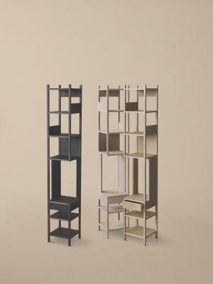 Der Rahmen des Regals besteht aus vier schlanken Säulen. Trotzdem ist das Regal enorm stabil, denn Seitenteile und die Schublade geben den statischen Halt.