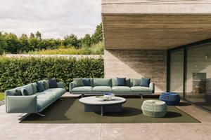 Ein zentrales Element dieser Kollektion ist der Aluminiumrahmen, dessen minimalistische Linienführung die exzellente Materialqualität und die vielfältigen Kombinationsmöglichkeiten betont. Auf dieser flexiblen und leichten Struktur sind großzügig gepolsterte Sitzgelegenheiten platziert, die sich individuell an verschiedene Module anpassen lassen.