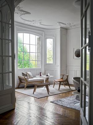Die Klismos Familie von Knoll, entworfen von Antonio Citterio, verbindet schlanke Formen mit natürlicher Handwerkskunst. Die Sitz- und Rückflächen sind aus fein gewebter Baumwollschnur, alternierend mit einer Variante ganz aus Holzrückenteil, und ruhen auf einem Gestell aus Eichenholz – wahlweise in Natur oder Schwarz. Optional lassen sich Ledersitzkissen hinzufügen, die mit pflanzlich gegerbtem Leder bezogen sind und für zusätzlichen Komfort sorgen. Klismos strahlt Leichtigkeit aus, wirkt gleichermaßen elegant wie entspannt und fügt sich perfekt in moderne Wohnbereiche mit Anspruch auf Stil und Qualität.