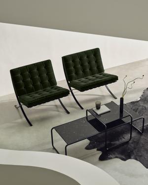Der Barcelona Samt Edition Lounge Chair von Knoll International ist eine Neuinterpretation der weltberühmten Ikone von Ludwig Mies van der Rohe und Lilly Reich. Ursprünglich 1929 für den deutschen Pavillon der Weltausstellung in Barcelona entworfen, verkörpert er mit seiner klaren Kreuzform des verchromten Stahlgestells und den großzügigen Polstern architektonische Strenge und zeitlose Eleganz. In der neuen Samt Edition erhält der Klassiker eine weiche, warme Note: In ausdrucksstarken Farbvarianten erhältlich verleihe der Stoff dem ikonischen Design zusätzliche Tiefe und machen den Stuhl zu einem luxuriösen Blickfang, der Vergangenheit und Gegenwart stilvoll verbindet.
